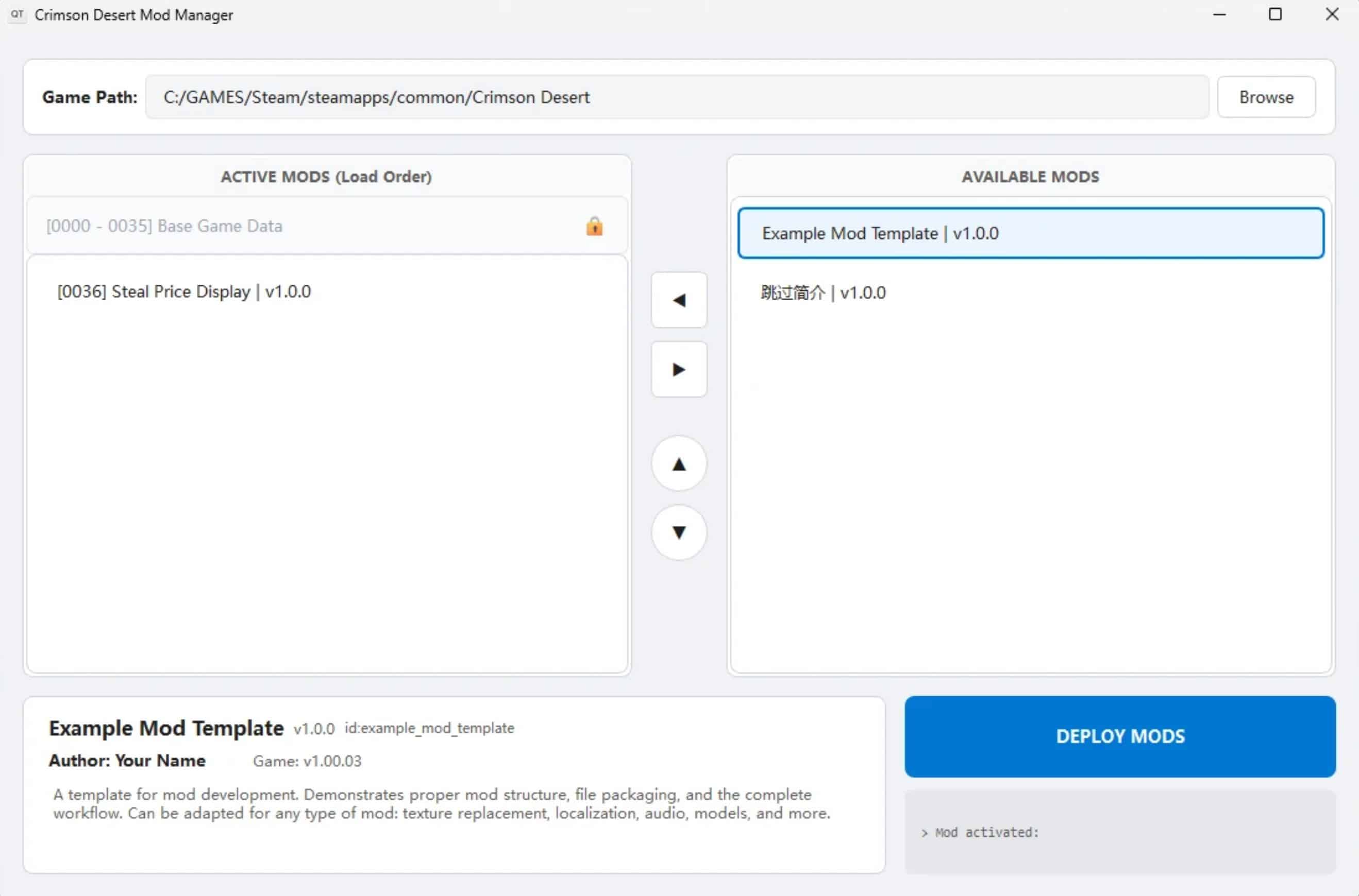 A lightweight, standalone mod manager for Crimson Desert built with C++. This manager works alongside Crimson Browser and Mod Manager to deploy your mods safely and efficiently.