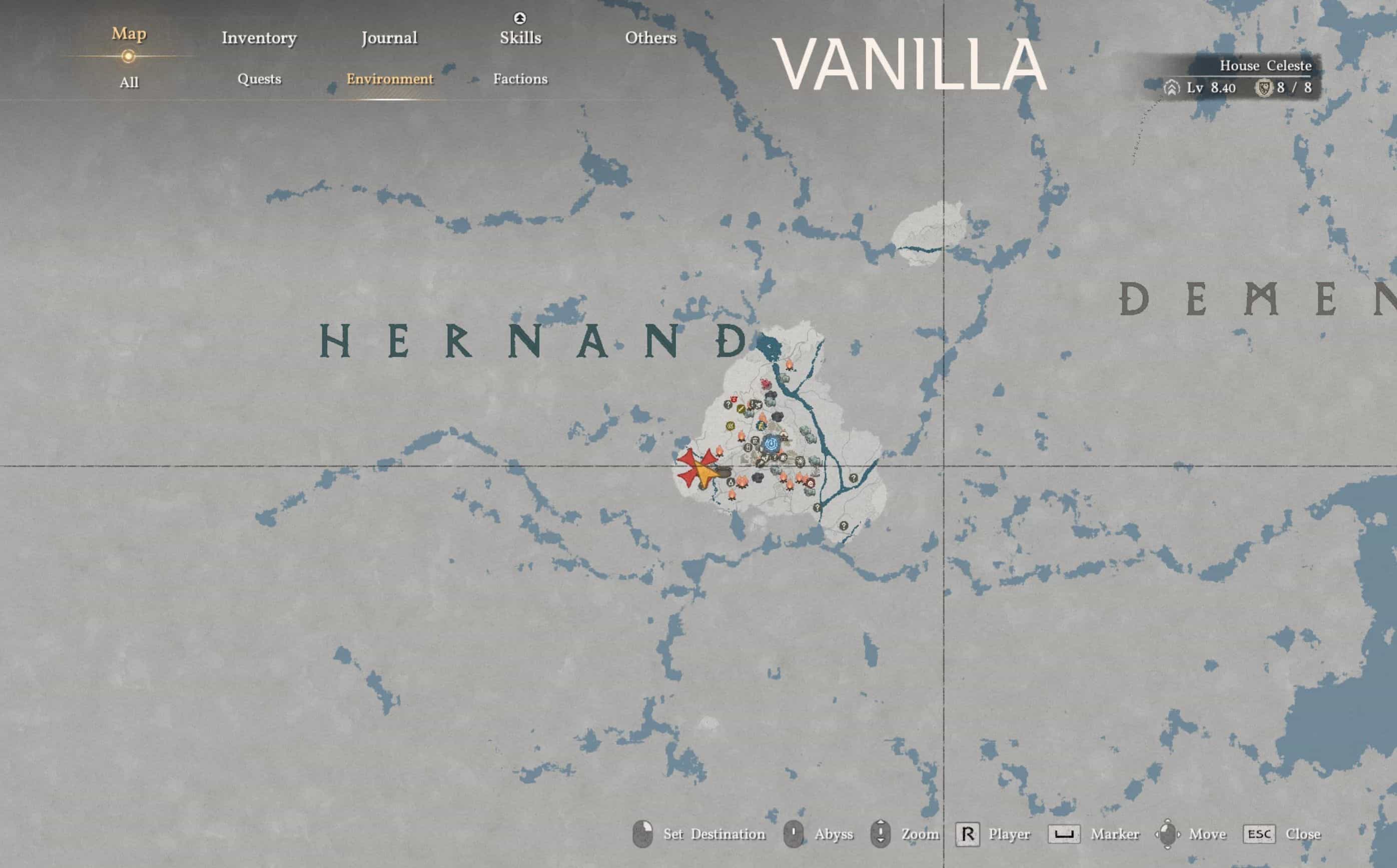 Reveals the whole map (both Pywel and Abyss), with question mark icons. Currently a single edit – revealed whole map (both Pywel and Abyss), with all question mark icons visible (but not other ones).